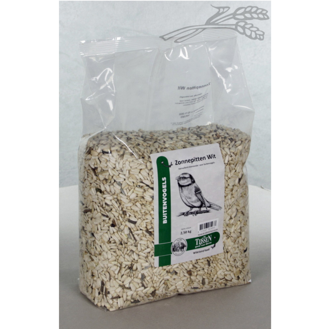 Zonnepitten Wit zijn rijk aan vetten. Lekker voor buitenvogels, of als lekkernij voor parkietachtigen.
