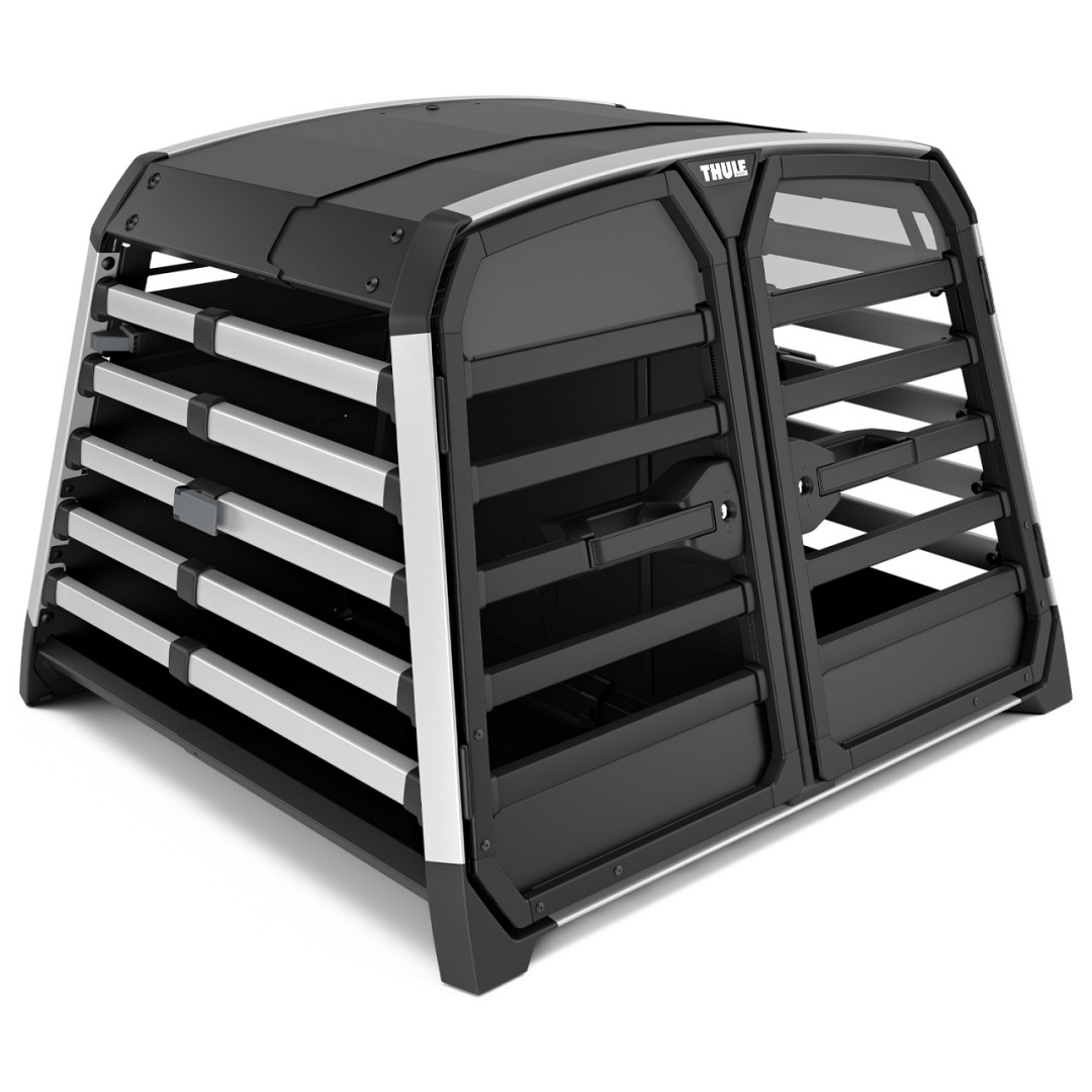 De Thule Allax dubbele hondenbench is de perfecte keuze voor veilige en comfortabele autoritten met je trouwe viervoeters. Ontworpen voor flexibiliteit, kan hij worden gebruikt voor twee honden of worden omgezet in een ruime bench voor één grotere hond door de scheidingswand te verwijderen. De verstelbare wand kan ook worden gekanteld om meer ruimte aan één kant te creëren, waardoor het ideaal is voor honden van verschillende groottes. Grondig getest op crashtesten in het Thule Test Center en gecertificeerd door TÜV SÜD, beschikt het over een innovatieve kreukelzone voor superieure bescherming. De met gas gedempte deur opent en sluit zacht, en het ingebouwde slot voegt extra veiligheid toe.