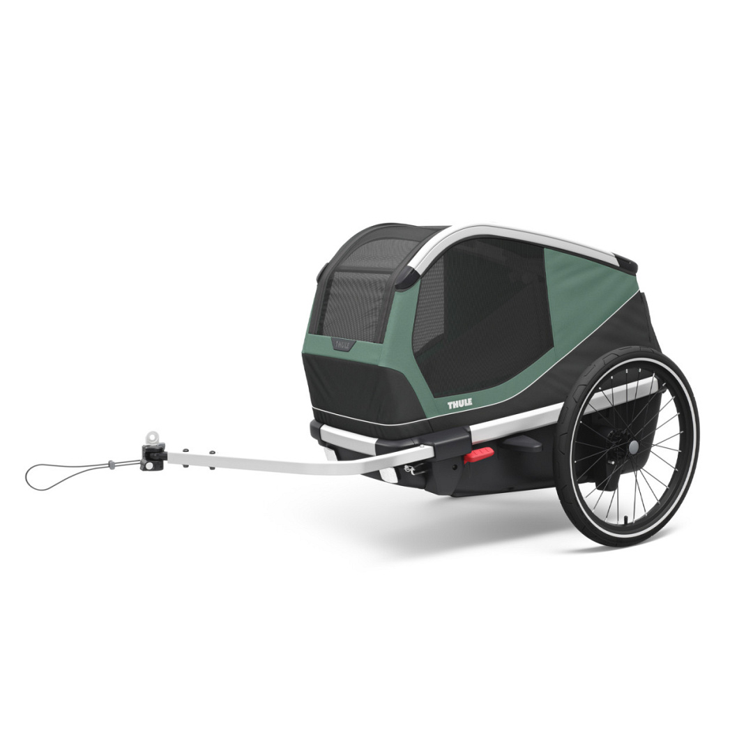 Door de wielen en de stang te verwijderen kun je de wagen stevig op de grond plaatsen zodat jouw hond goed kan wennen aan de fietskar. De montage aan de fiets is in een mum van tijd gebeurd door de nieuwe Thule fietskoppeling. De wagen is eenvoudig inklapbaar voor bv opslag of transport.