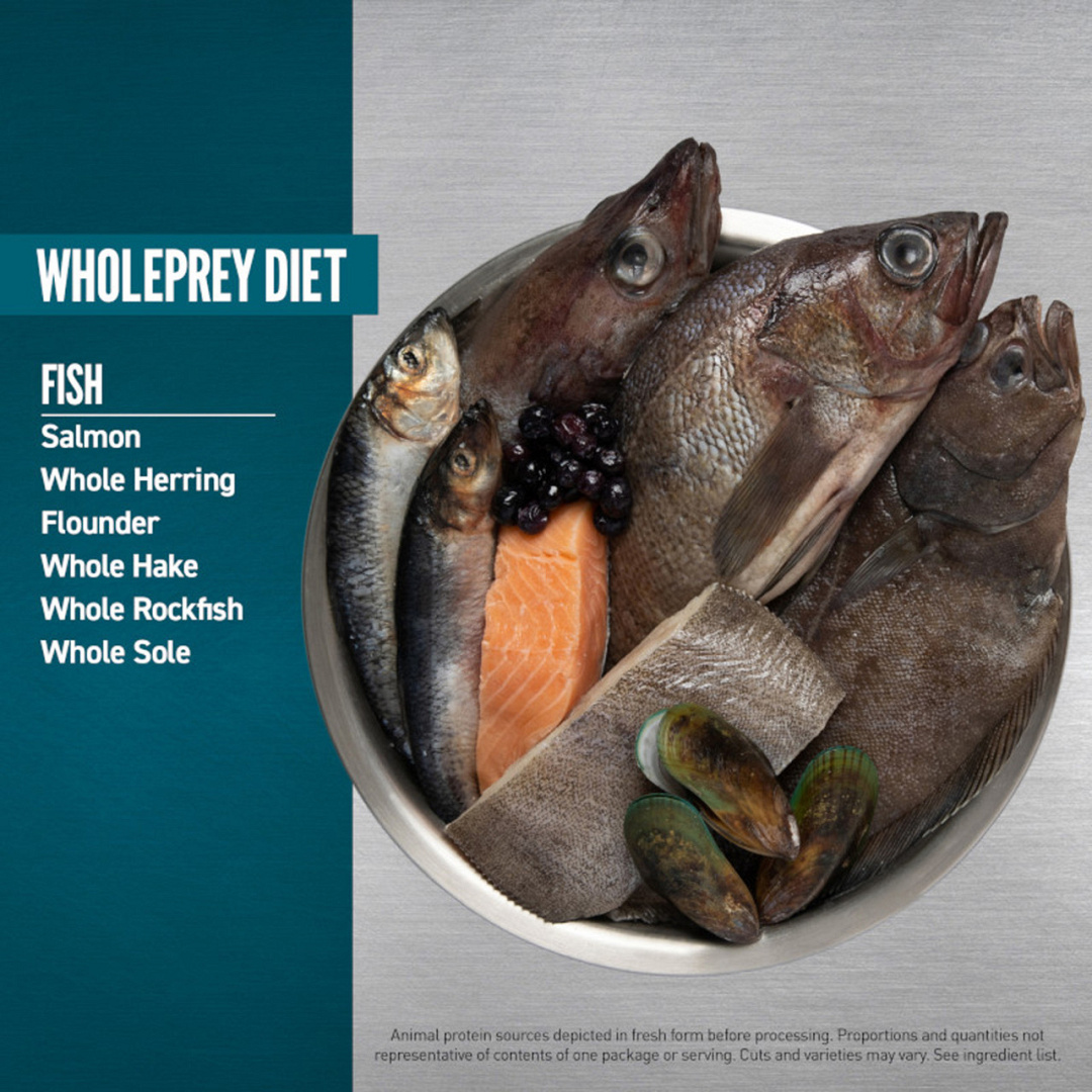Orijen small breed Marine fish is samengesteld voor kleine hondjes die gek zijn op vis. Het recept zit boordevol dierlijke ingrediënten met zes verschillende soorten vis. Het bevat geen gevogelte en is daarom ideaal voor honden met een allergie voor kip of rund. Het brokje is kleiner, aangepast op de wensen van kleine rassen. Vis is van nature rijk aan omega 3- en omega 6-vetzuren, wat zorgt voor een gezonde huid en vacht. De groene mosselen en vetzuren uit haringolie ondersteunen de gewrichten.