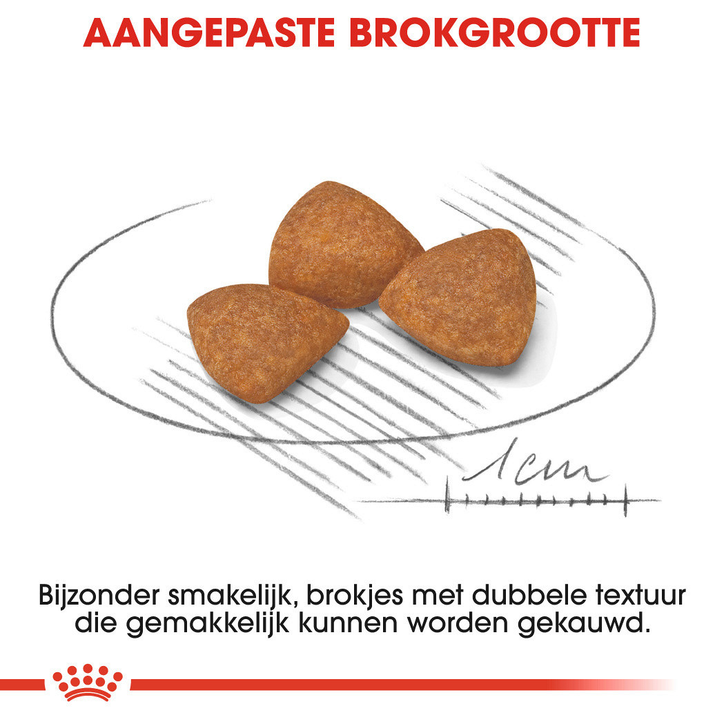 Op basis van de nieuwste wetenschappelijke mogelijkheden is Royal Canin X-Small Ageing 12+ ontwikkeld. Een aangepast combinatie van voedingsstoffen helpt je hond vitaal te houden en de ouderdomsverschijnselen te vertragen. De kleine brokjes, speciaal voor de kleine kaak van je hond, hebben een groot resultaat. Kijk hoe vitaal je hond nog kan zijn op die leeftijd!