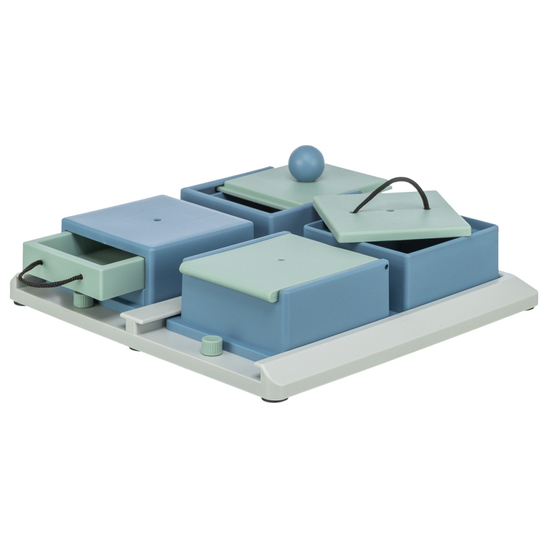 De TRIXIE Dog Activity Poker Box 1 is een veelzijdig bordspel met 4 verschillende spelvariaties de hond moet de bijbehorende onderdelen op verschillende manieren openmaken, om bij zijn beloning te kunnen bodemplaat met 4 onderdelen, flexibel te plaatsen te combineren met andere Poker Box spellen kunststof slipvast door rubberen voetjes incl. handleiding met tips en handigheidjes voor een optimale training