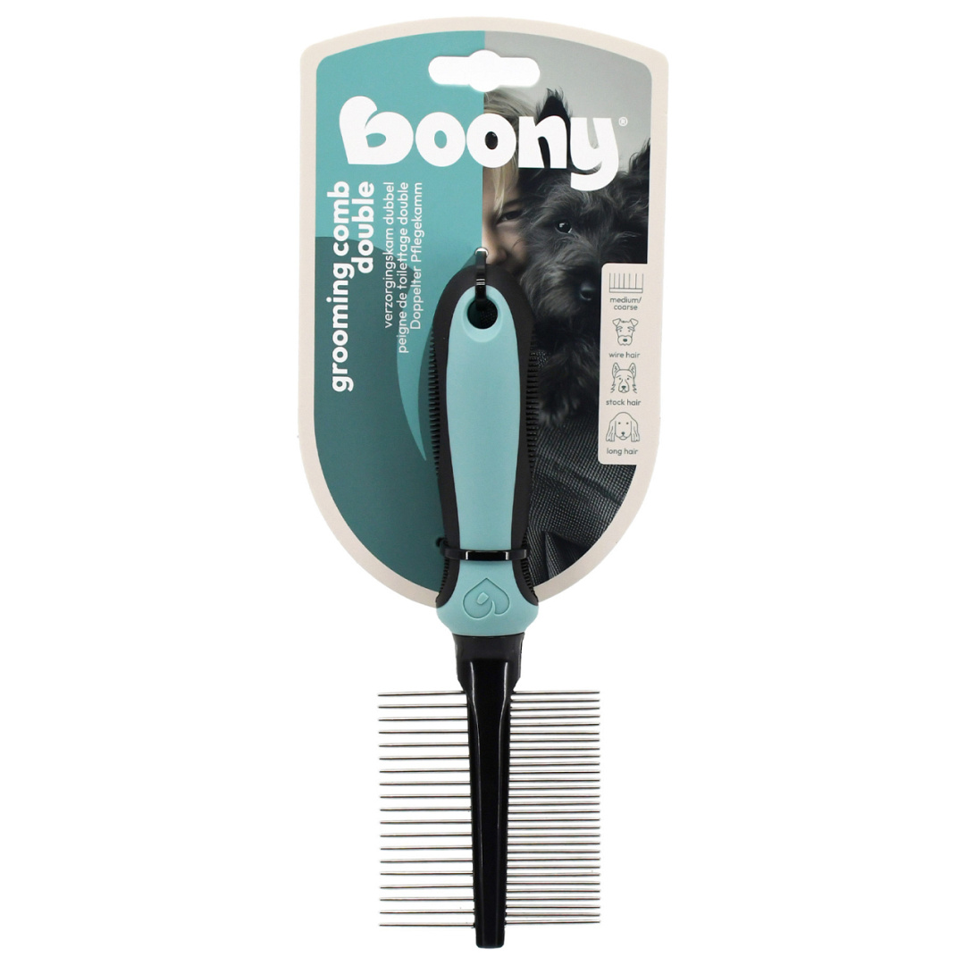 De Boony Dubbele verzorgingskam is een veelzijdig hulpmiddel voor de dagelijkse verzorging van jouw hond. De kam maakt de vacht los en verwijdert eenvoudig losse haren, vuil en eventuele klitten. Dankzij het slimme ontwerp is deze kam geschikt voor honden met zowel een dikke als een dunne vacht.