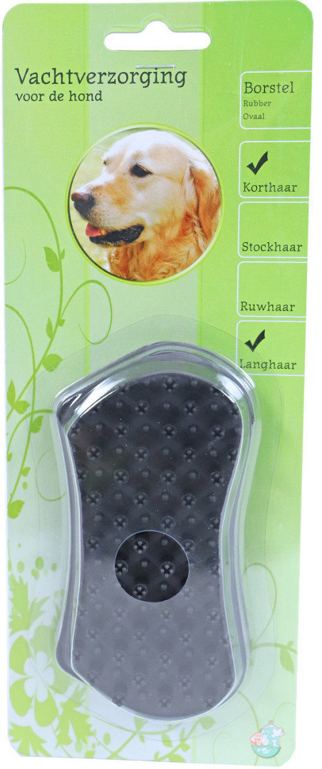 De borstel ovaal zwart is uitermate geschikt voor het verzorgen van de hondenvacht. Wrijf de borstel stevig over de huid, en de speciaal gevormde rubber uiteinden verwijderen dode huidcellen, vuil en losse of dode haren.
