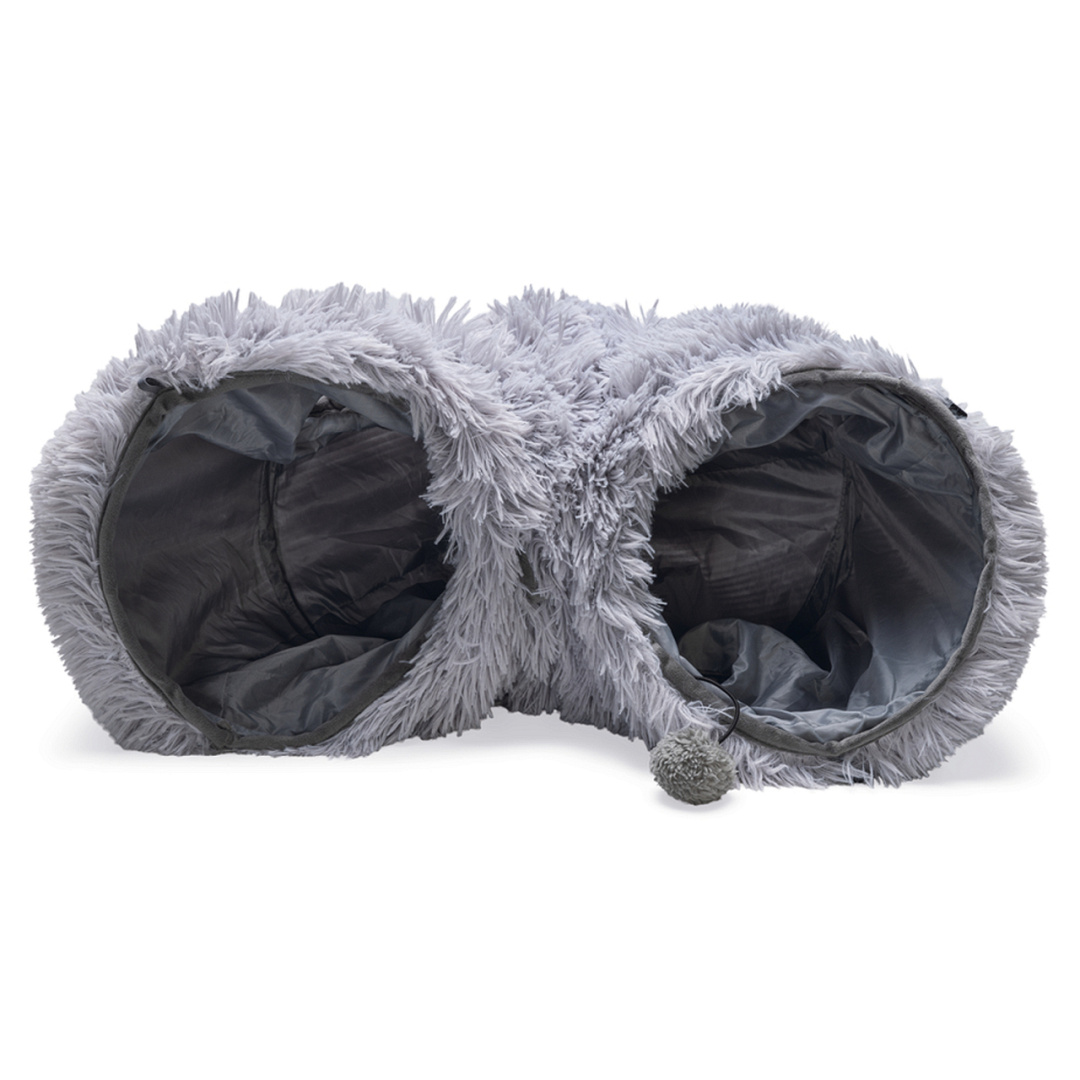 Laat jouw kitten zich uitleven met het Beeztees Kitten kattenspeeltje speeltunnel Nona! Deze kattentunnel is een geweldige plek voor jouw nieuwsgierige kitten om te verkennen, verstoppertje te spelen en zijn of haar jachtinstincten te oefenen. Dankzij de ingebouwde ringen blijft de tunnel stevig staan, zodat jouw kitten er keer op keer doorheen kan rennen. Met een pluchen buitenkant voelt de tunnel heerlijk zacht aan, terwijl de polyester binnenkant zorgt voor een stevige constructie die tegen een stootje kan. Aan de tunnel hangt een leuk balletje dat jouw kitten uitdaagt tot spelen. De twee openingen aan de bovenzijde zorgen voor extra speelplezier voor jouw kitten. Speeltunnel Nona is perfect voor actieve kittens die graag ontdekken en ravotten. Een mooie bijkomstigheid, je kunt de kattentunnel opvouwen als je kitten klaar is met spelen.