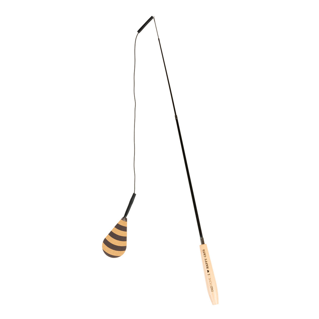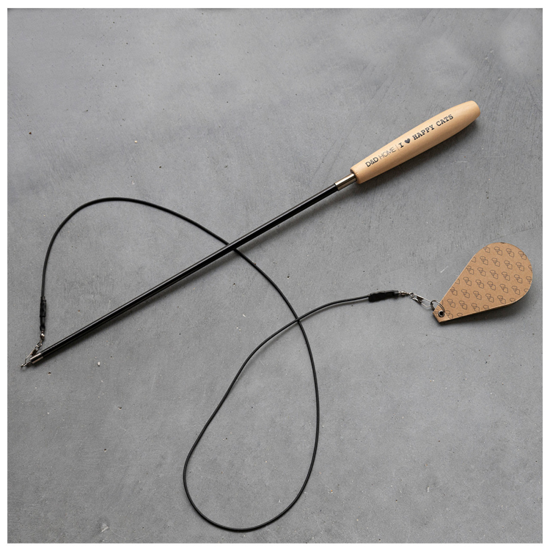 D&D I love happy cats telescopische kattenhengel Connor is ontworpen in samenwerking met kattengedragstherapeut Anneleen Bru en is het ultieme jachtspeeltje voor happy cats. De 97 cm lange telescopische en flexibele hengel is voorzien van een 90 cm lang koord en een kartonnen vliegende prooi. Die prooi vliegt en klinkt net als een echte vogel! Dit spel houdt de kat fit en verlaagt stress.