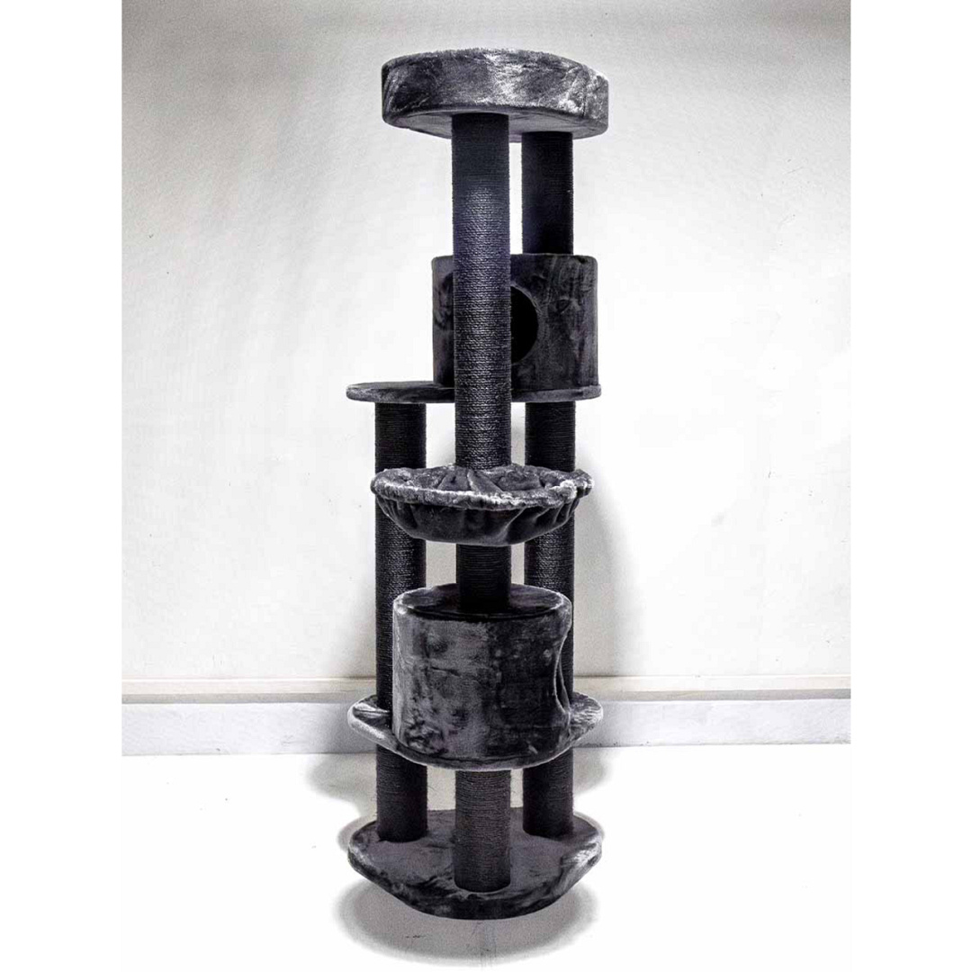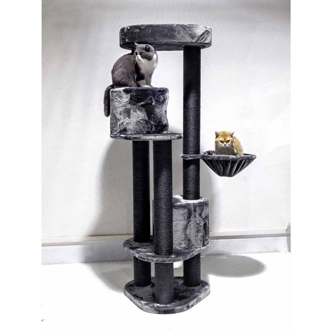 Stabiel krabmeubel met 2 slaapruimtes, hangmat en superzacht divan. Extra hoog en ruimtebesparend. Afm. 59 x 56 x 180 cm.