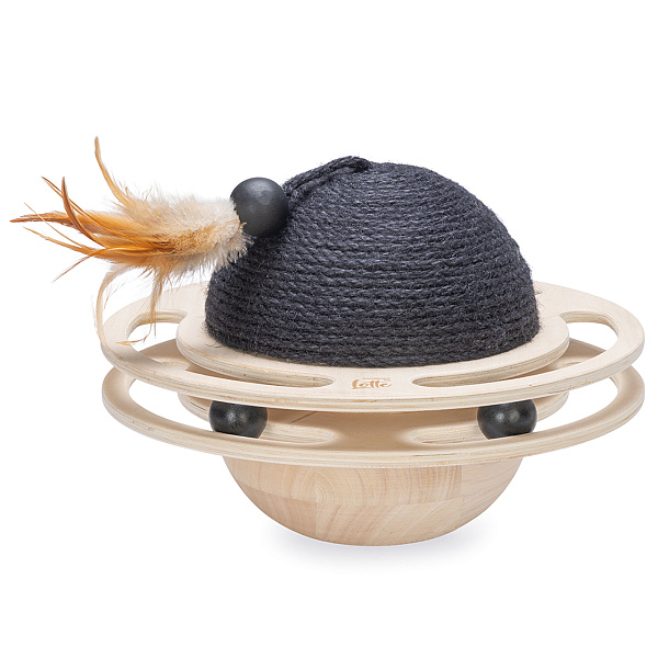 Wiebelende speelbol van multiplex met juten touw, voor het leukste speel- en krabplezier.